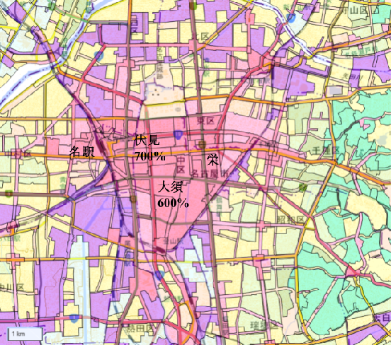 これらを総合すると、用途混在を促す場所は、住居地域、商業地域、準工業地域で、容積率限度が400%以下となります。どこにそんな場所があるのでしょうか。