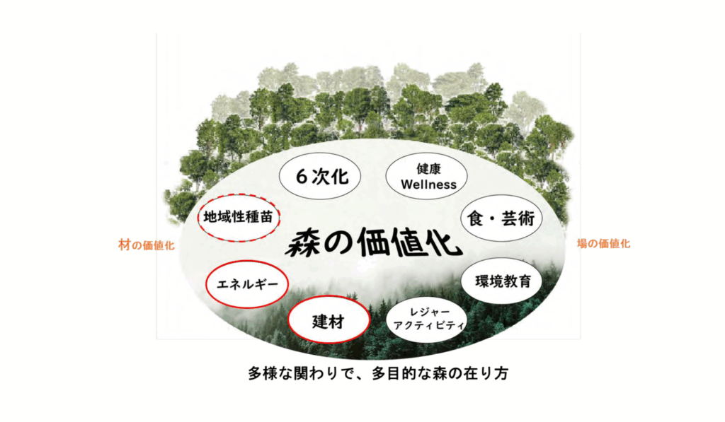 木材生産としてしか山に価値がないのか? そんなことはありません。森には多様な価値があります。それを、多様な関わりかたで引き出していく。