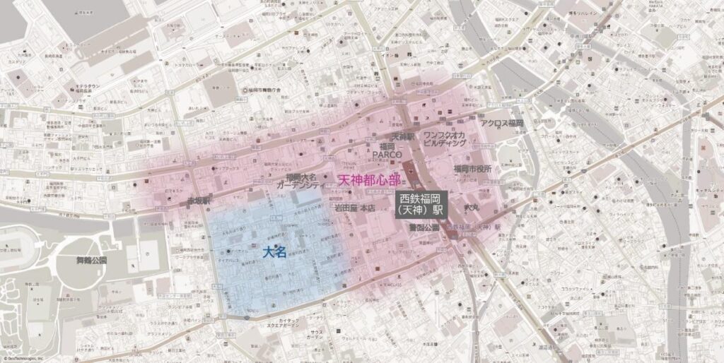 最後に取り上げるのは福岡市の大名です。福岡市中央区のほぼ中心、天神の西側に隣接する大名。かつては武家屋敷が立ち並ぶ静かな町でした。