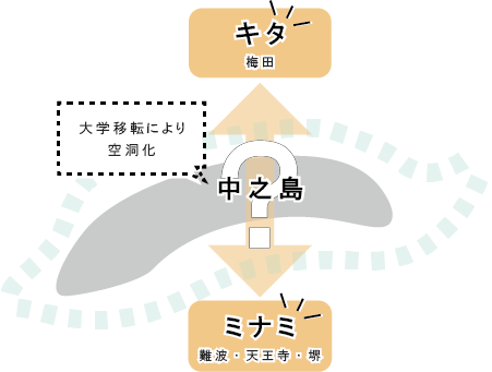 その結果、街から学生がいなくなったことで中之島独自の文化や都市の活力が低下していきました。