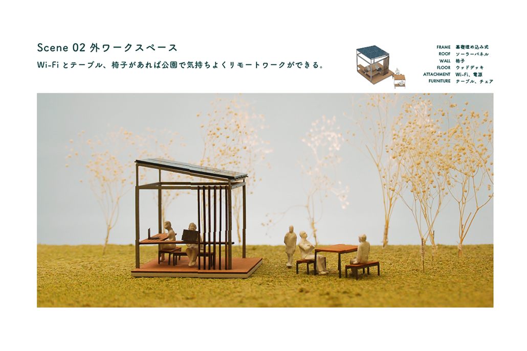 今回はディスカッションをもとにした10のシーンからいくつかご紹介しましたが、実際には、「公園やマチナカの豊かな屋外環境を活かしてどんなことを実現したいのか」という設置者や利用者の思いがアタッチメントのバリエーションに現れるように感じました。